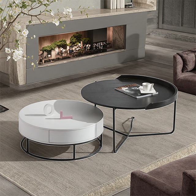 Μινιμαλιστικό Τραπέζι Τσαγιού από Σίδηρο Τέχνης Βόρειου Μινιμαλισμού, Ελαφριάς Πολυτέλειας, Ιταλικό Τραπέζι Τσαγιού, Συνδυασμός μεγεθών, Μικρό Σπίτι Σαλόνι![]()